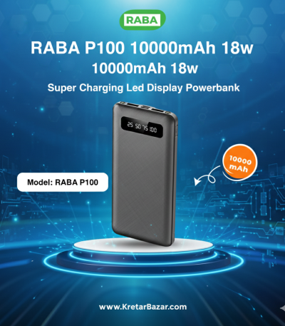 RABA P100 10000mAh Powerbank with Fast Charging & Dual USB Ports