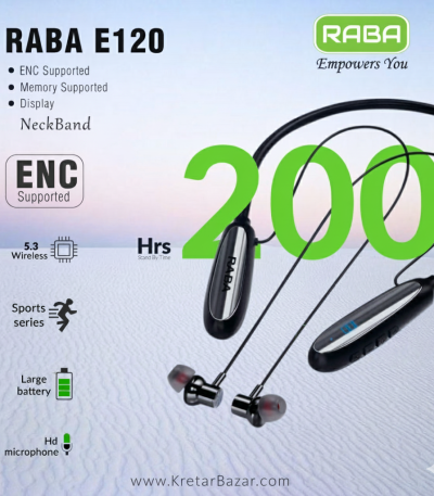 RABA E120 200Hours ENC Display NeckBand (Memory Supported)